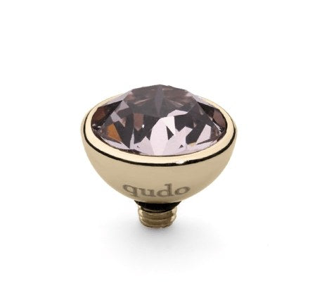 The Bottone style of Qudo top is available in multiple diameters: 5mm, 8mm, 10mm, 11.5mm, & 13mm. Bottone sits a little taller than tops such as Canino, Tondo, Sesto, and Molfetta. With it's narrow boarder and Qudo branding, this is a very modern design. All Qudo tops are Stainless Steel with Swarovski Crystals.