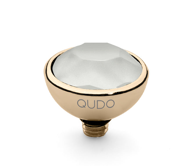 The Bottone style of Qudo top is available in multiple diameters: 5mm, 8mm, 10mm, 11.5mm, & 13mm. Bottone sits a little taller than tops such as Canino, Tondo, Sesto, and Molfetta. With it's narrow boarder and Qudo branding, this is a very modern design. All Qudo tops are Stainless Steel with Swarovski Crystals.