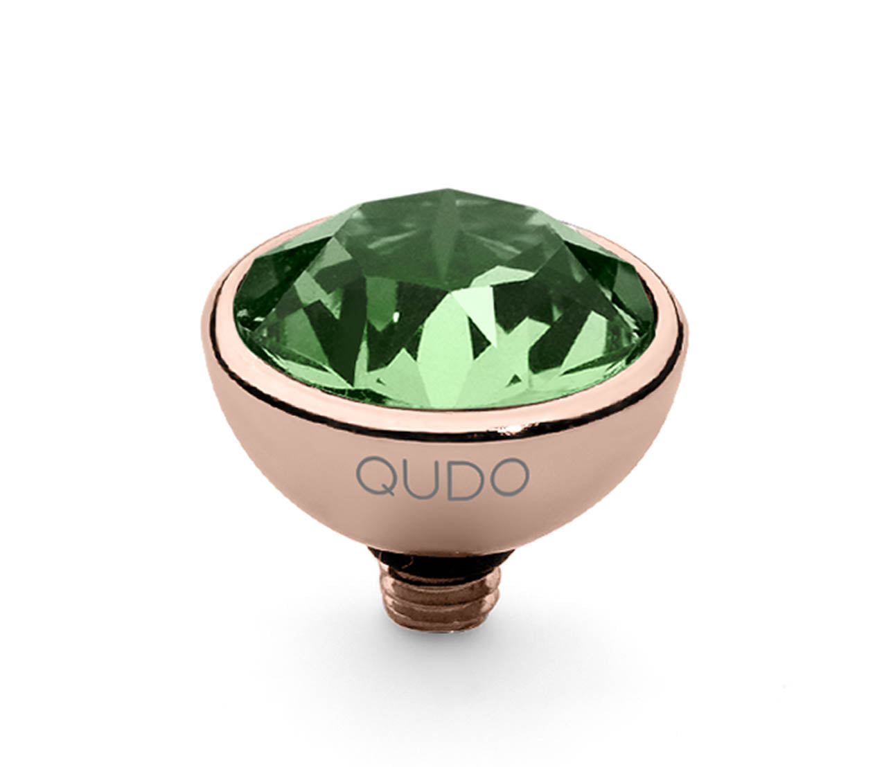 The Bottone style of Qudo top is available in multiple diameters: 5mm, 8mm, 10mm, 11.5mm, & 13mm. Bottone sits a little taller than tops such as Canino, Tondo, Sesto, and Molfetta. With it's narrow boarder and Qudo branding, this is a very modern design. All Qudo tops are Stainless Steel with Swarovski Crystals.