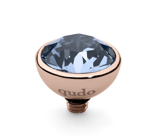 The Bottone style of Qudo top is available in multiple diameters: 5mm, 8mm, 10mm, 11.5mm, & 13mm. Bottone sits a little taller than tops such as Canino, Tondo, Sesto, and Molfetta. With it's narrow boarder and Qudo branding, this is a very modern design. All Qudo tops are Stainless Steel with Swarovski Crystals.