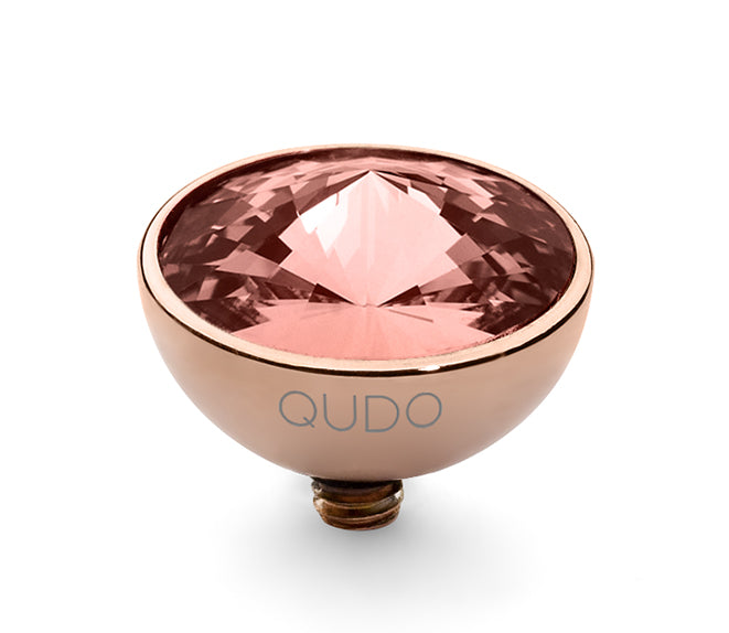 The Bottone style of Qudo top is available in multiple diameters: 5mm, 8mm, 10mm, 11.5mm, & 13mm. Bottone sits a little taller than tops such as Canino, Tondo, Sesto, and Molfetta. With it's narrow boarder and Qudo branding, this is a very modern design. All Qudo tops are Stainless Steel with Swarovski Crystals.