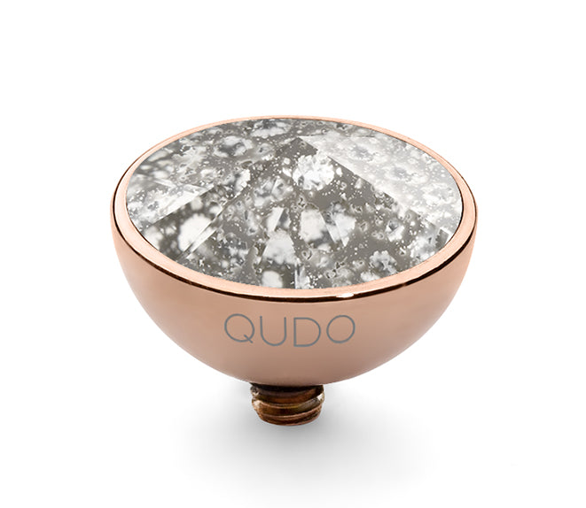 The Bottone style of Qudo top is available in multiple diameters: 5mm, 8mm, 10mm, 11.5mm, & 13mm. Bottone sits a little taller than tops such as Canino, Tondo, Sesto, and Molfetta. With it's narrow boarder and Qudo branding, this is a very modern design. All Qudo tops are Stainless Steel with Swarovski Crystals.