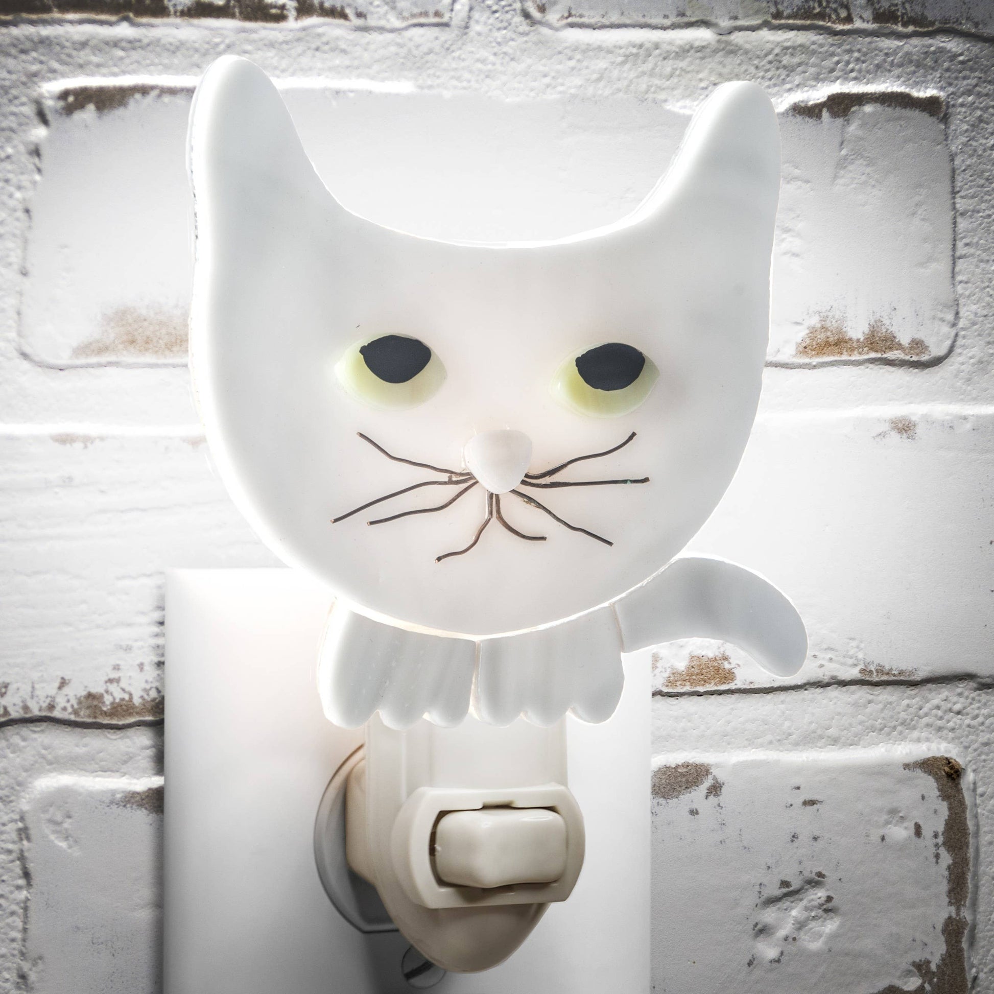 Each fused glass night light is created by skilled artisans who meticulously cut and arrange the pieces of stained glass. The colorful pieces are then fired in a kiln softening the edges and forming a permanent bond between the layers.