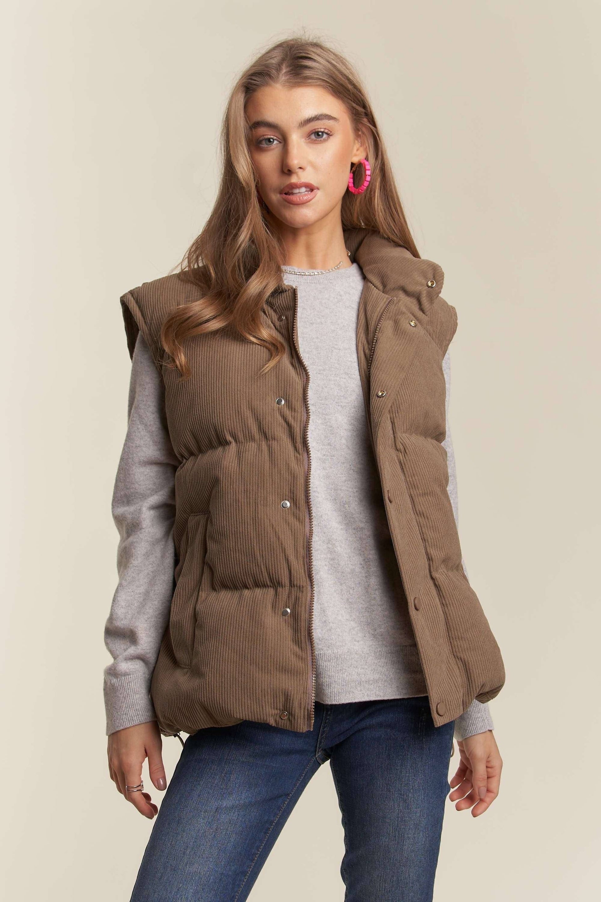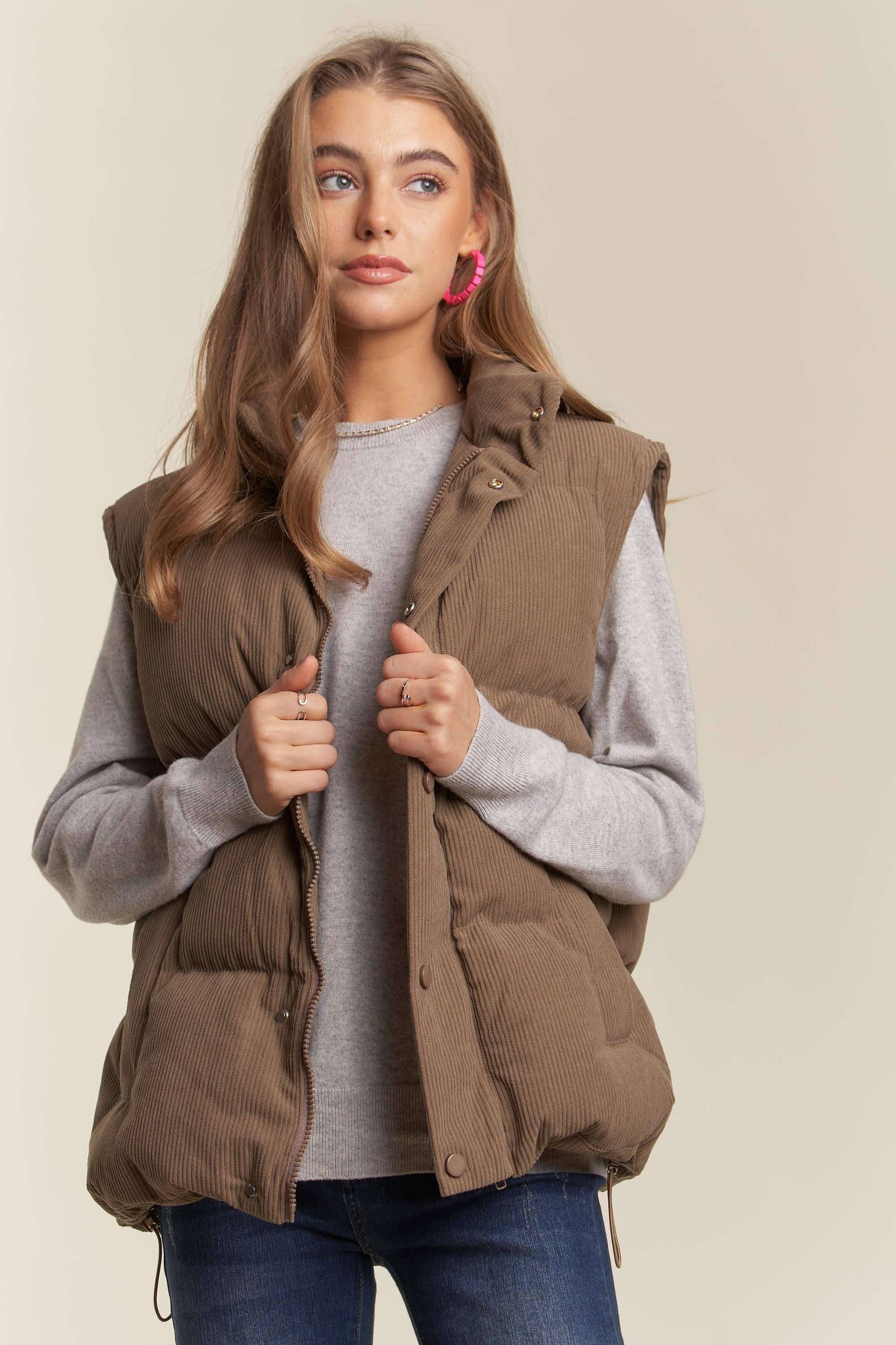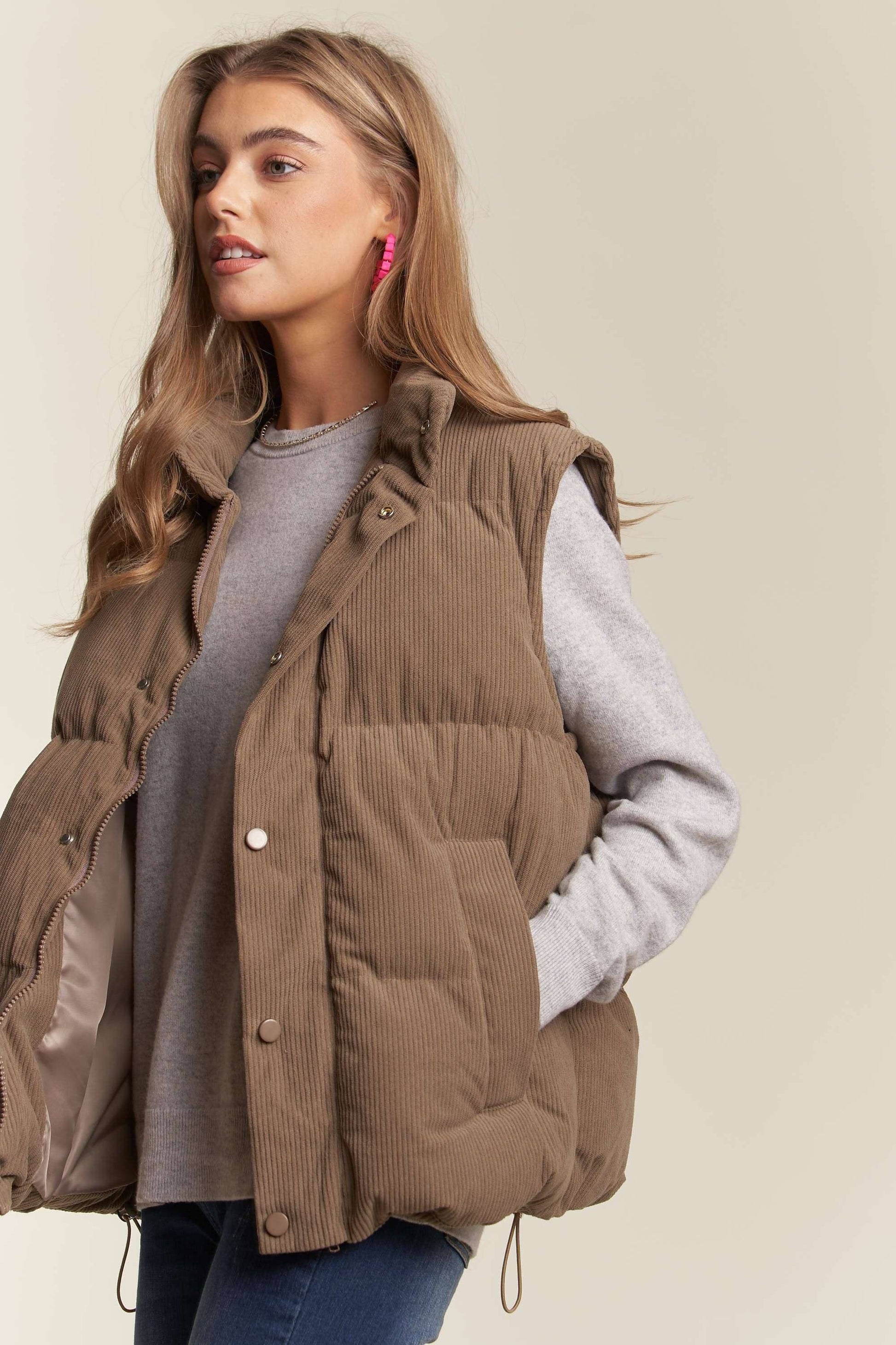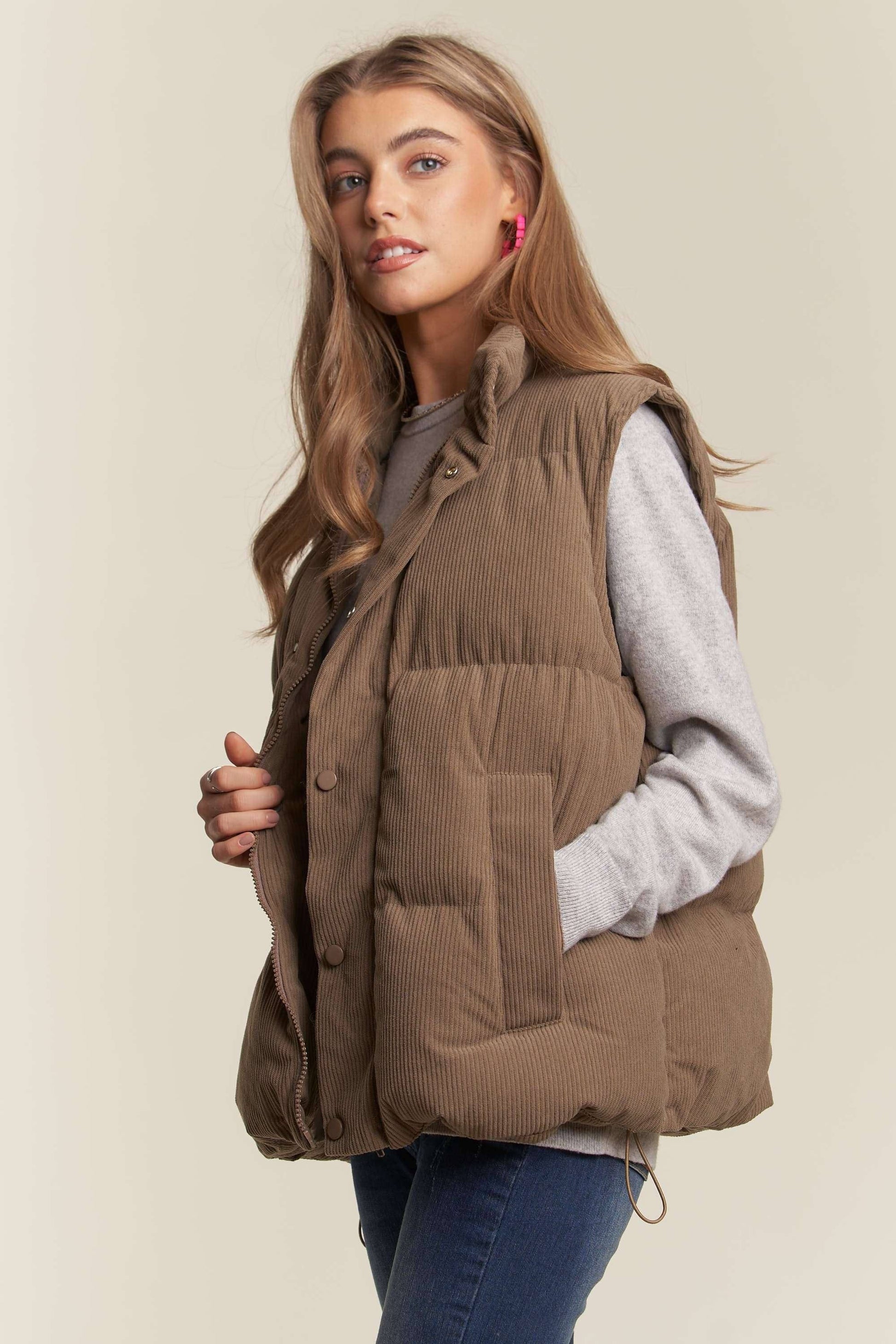BUTTON DOWN CORDUROY PUFF VEST 1