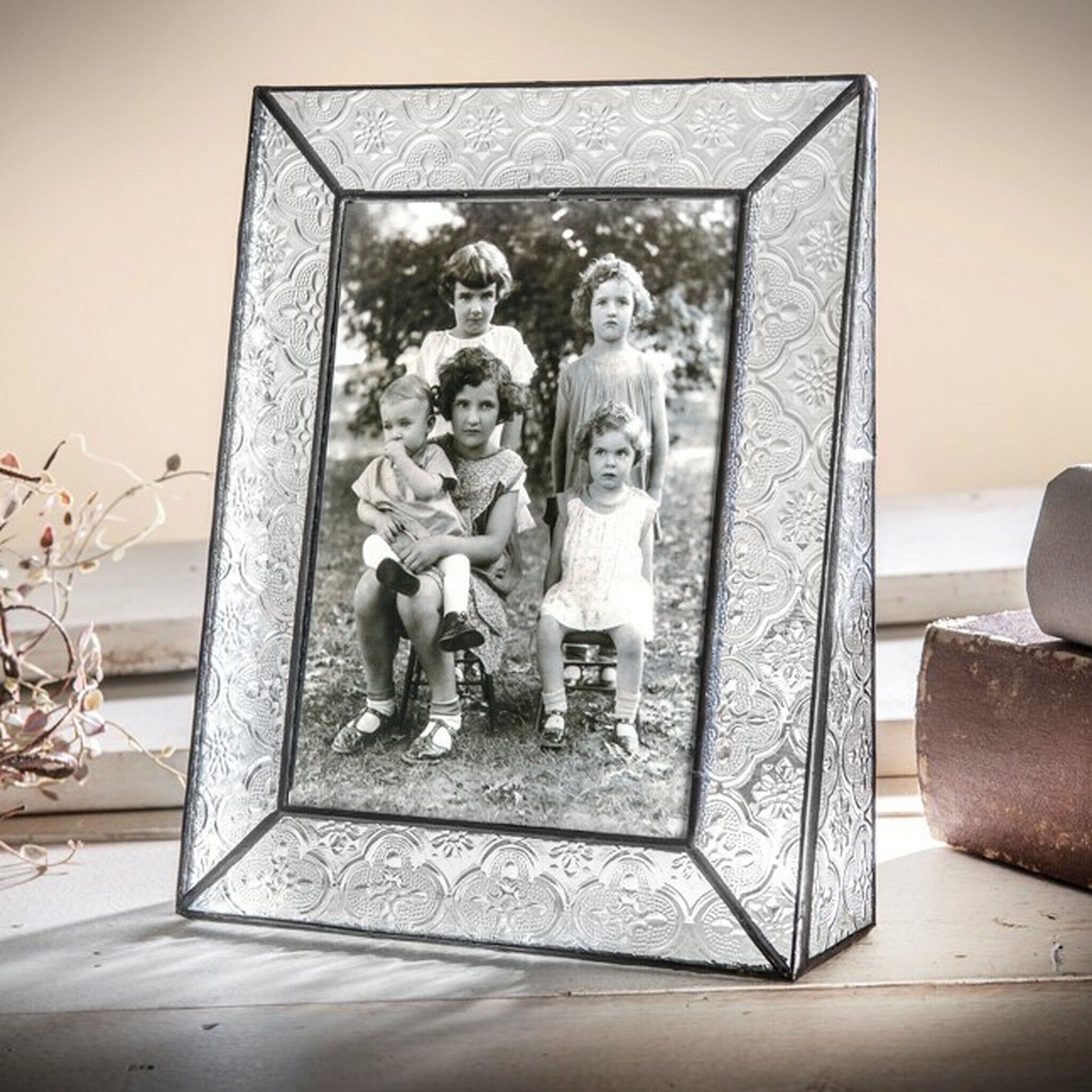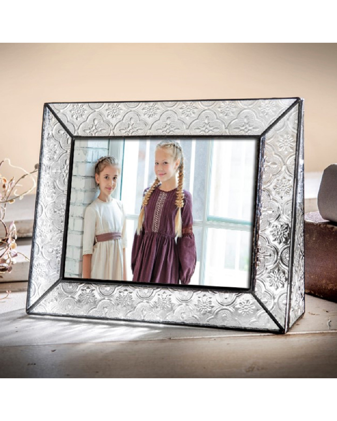 One of our most popular collections of picture frames features a clear glass embossed with a vintage texture. It is a historically accurate reproduction of pressed glass found in windows during the early 1900s. This clear glass picture frame with its delicate pattern makes the ideal photo display for a tabletop or desk. Several sizes are available in this signature collection from J. Devlin and look stunning paired together. Add a cherished photo and this frame will make the ideal keepsake gift for a baby, graduation, or wedding anniversary. Each picture frame is carefully handcrafted by skilled artisans using a copper foil and solder technique developed by Louis Comfort Tiffany in the late 1800’s. This age-old art form combined with 21st century designs creates the perfect combination for unique home décor.