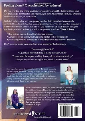 With full vulnerability and transparency, author Erin Geiswhite has done the unthinkable and published her teenage journal entries. You will read her struggle sin a difficult and bleak time of her life. As you hear some of your darkest thoughts and feelings echoed in hers, you will know you are not alone. There is hope.
