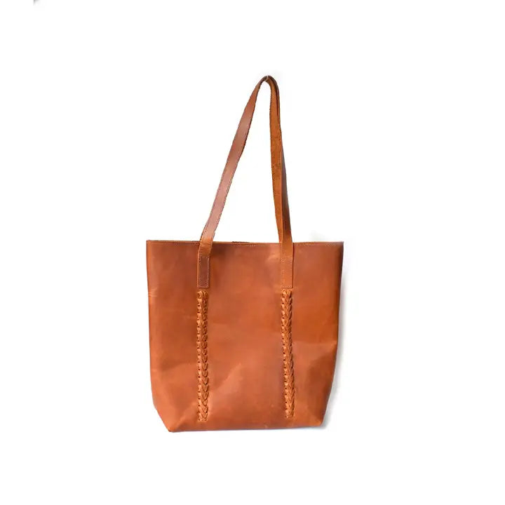 Everyone needs a vegetable-tanned classic leather tote. That kind of bag lasts a lifetime and is passed down fondly to the next generation. This classic tote includes hand-braided details that remind us of whimsical childhood crisscross jump-roping. Which you could definitely do with this tote slung on your shoulder!