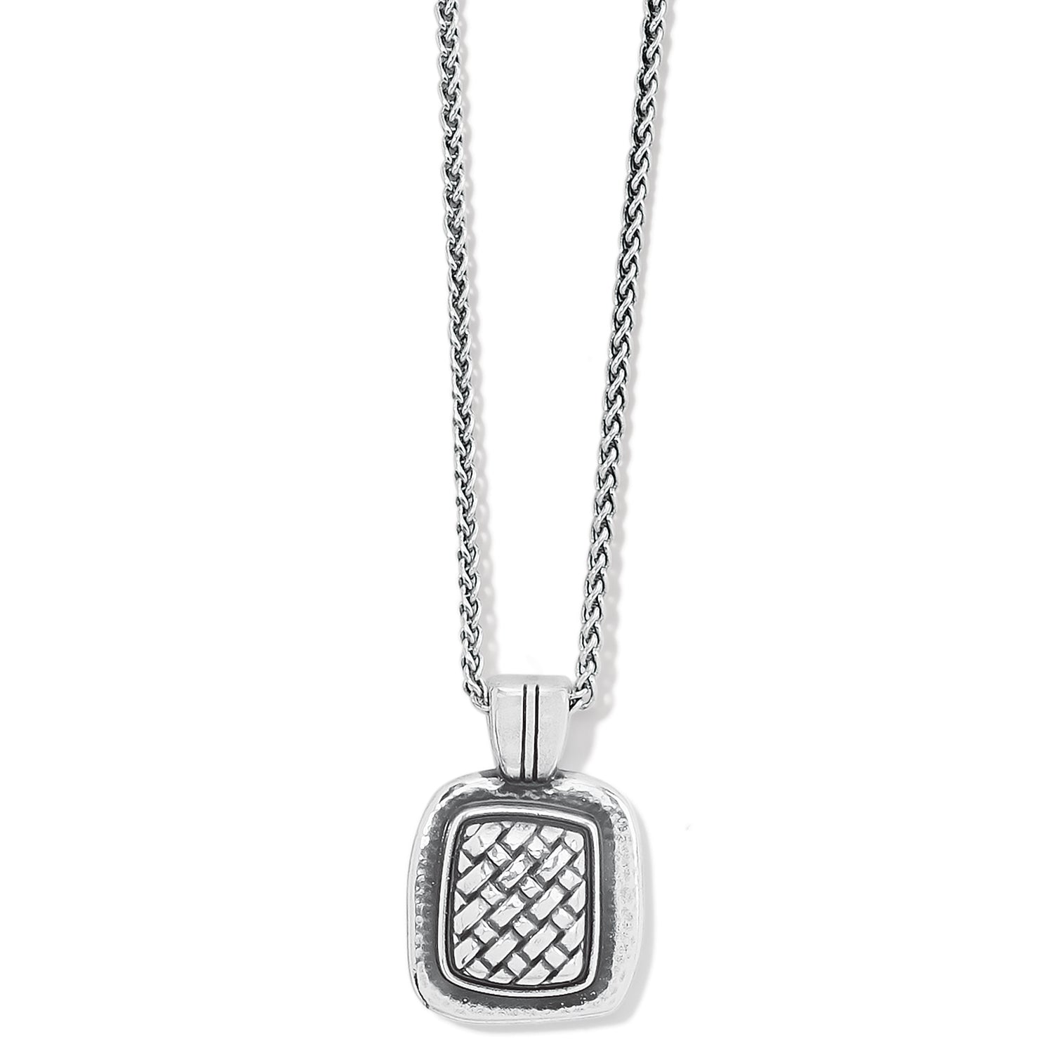 Hand hammered and woven jewelry has the handmade look of one-of-a-kind creations - it’s "the perfect imperfection." Collection: Ferrara Color: Silver Closure: Lobster Claw Length: 16" - 18" Adjustable Pendant Drop: 1" Finish: Silver plated
