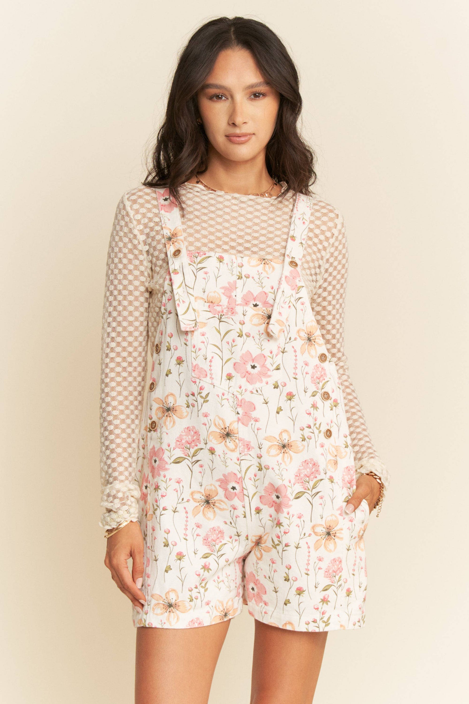 Flower pattern overall romper