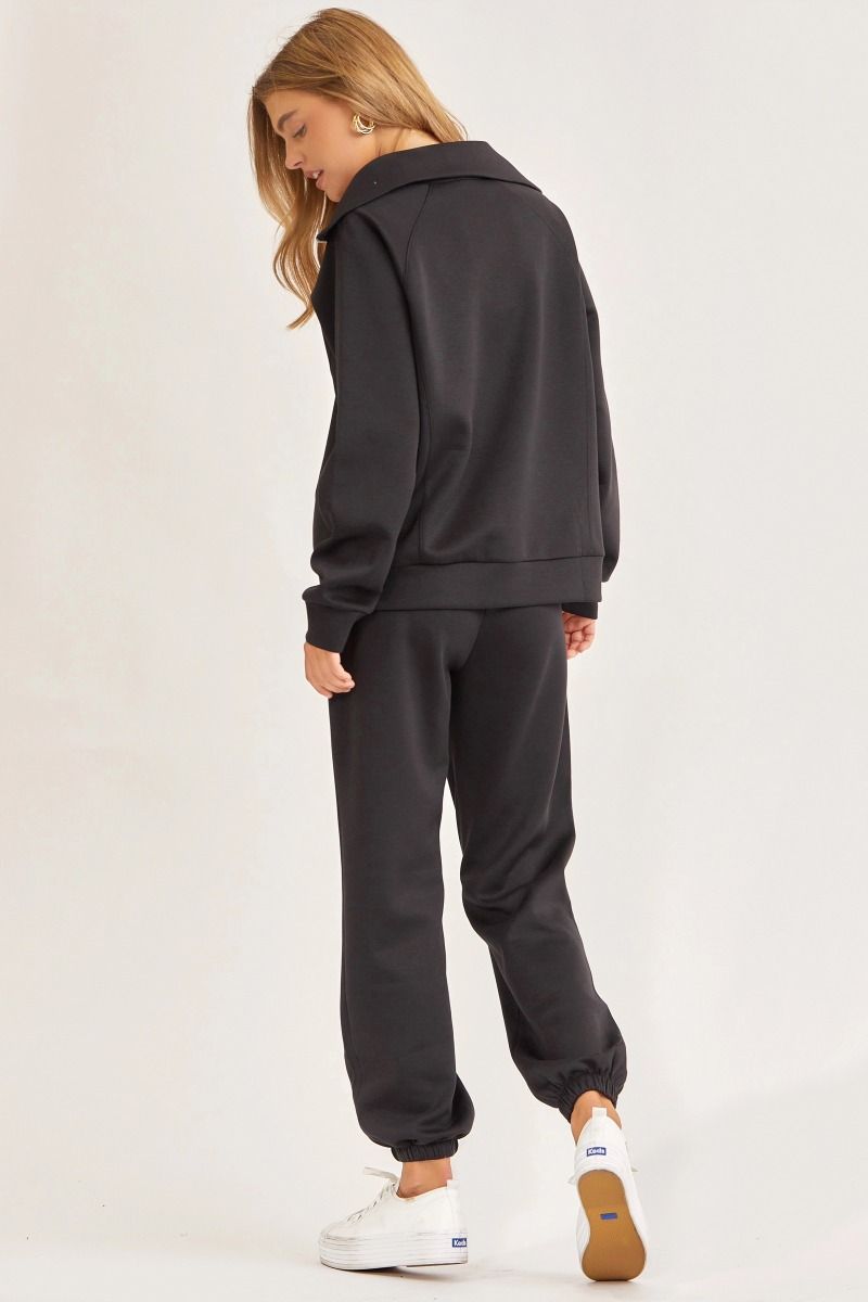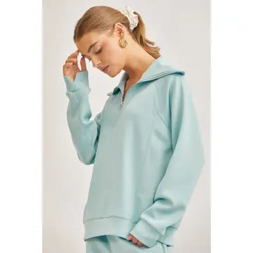 Our Half zip up pull over with the softest modal fabric ever! The banded sleeves and hem create an easy, relaxed look to this set. Ideal for your travels, this wrinkle-resistant pullover combines functionality with trendsetting fashion. Toss it in your bag and pull it out looking crisp and ready to wear!