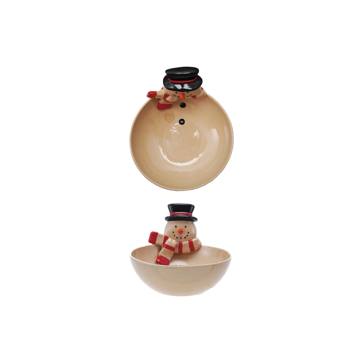 7"L x 6-1/4"W x 5"H Hand-Painted Stoneware Bowl w/ 3D Snowman Head, Multi Color