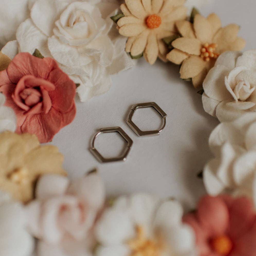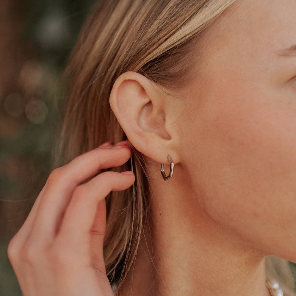 One of our most requested earring styles is finally here... hexagons! We promise you will LOVE these Hexagon Huggies - they're lightweight, hypoallergenic, and go with any outfit! The perfect everyday accessory you've been looking for.