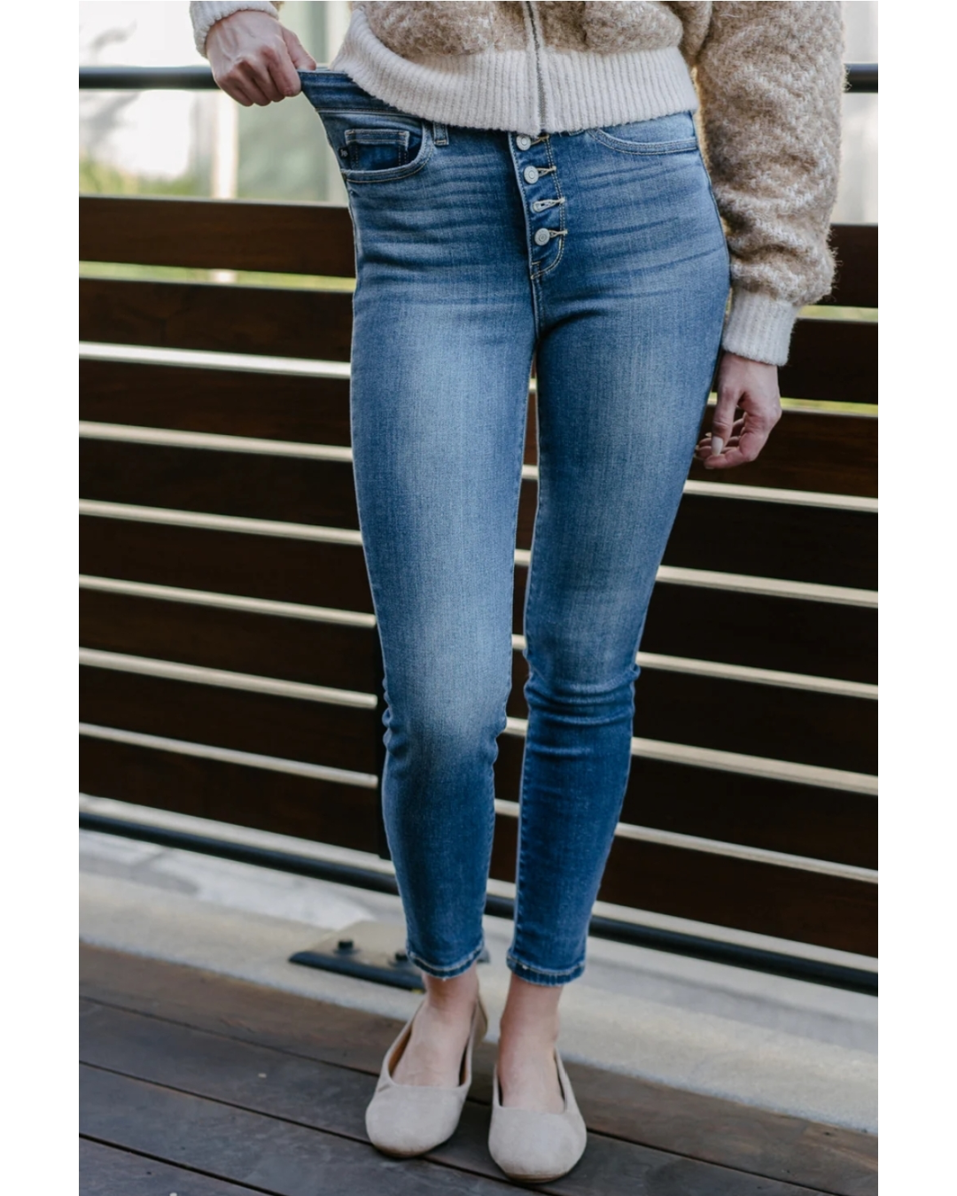 Classic Button Fly Detail: Adds a vintage-inspired touch for a polished yet playful vibe.