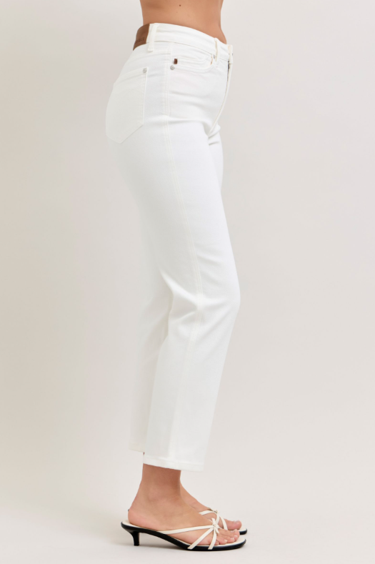 Judy Blue High Waist Tummy Control Ankle Straight White Pants