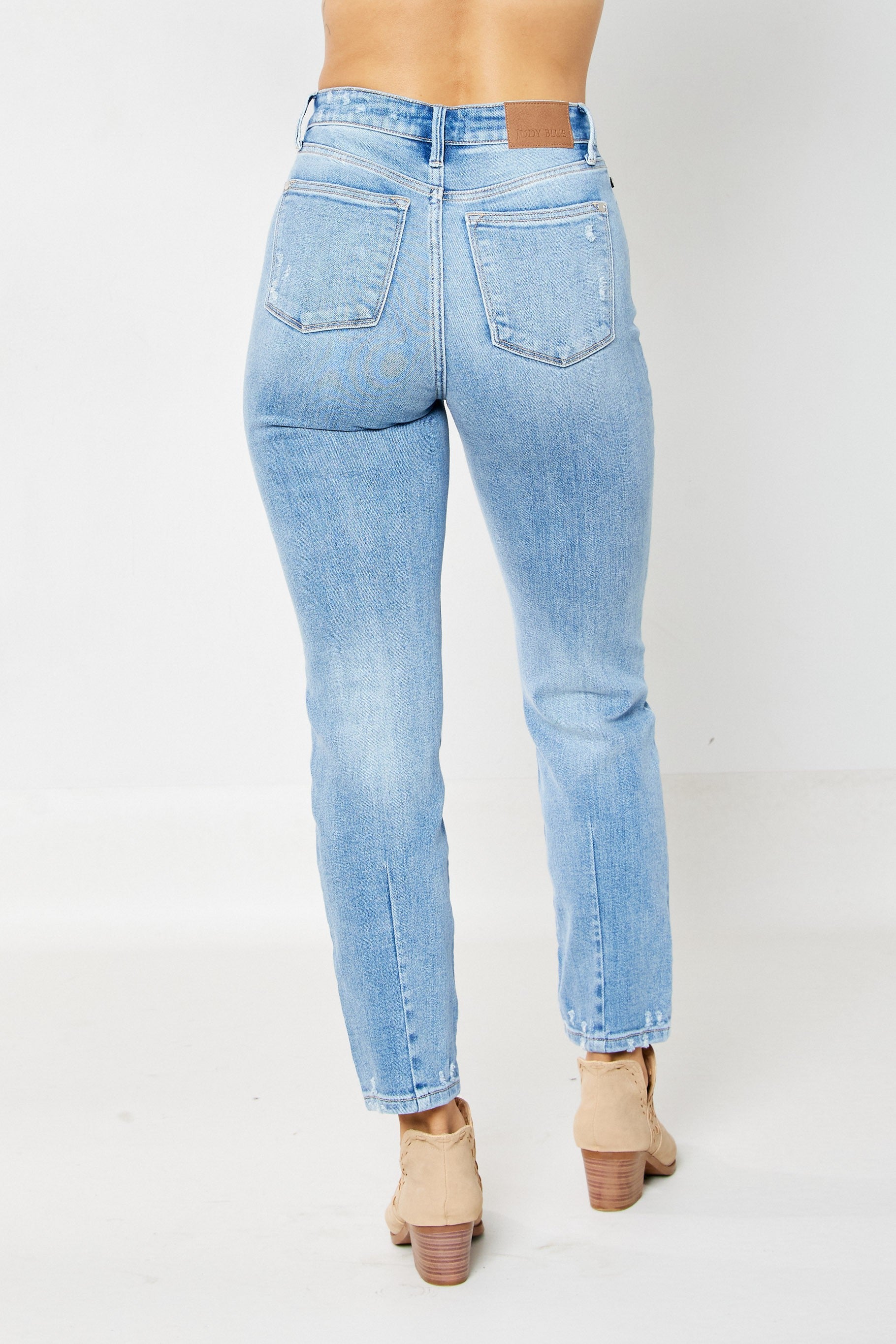 High Waist Destroy & Back Hem Dart Slim