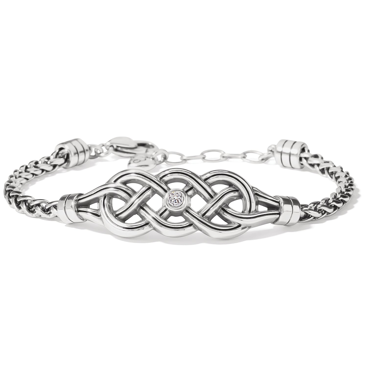 Collection: Interlok Color: Silver Closure: Lobster Claw Width: 9/16" Length: 7 1/4" - 8 1/4" Adjustable Material: Fine quality crystal Finish: Silver plated