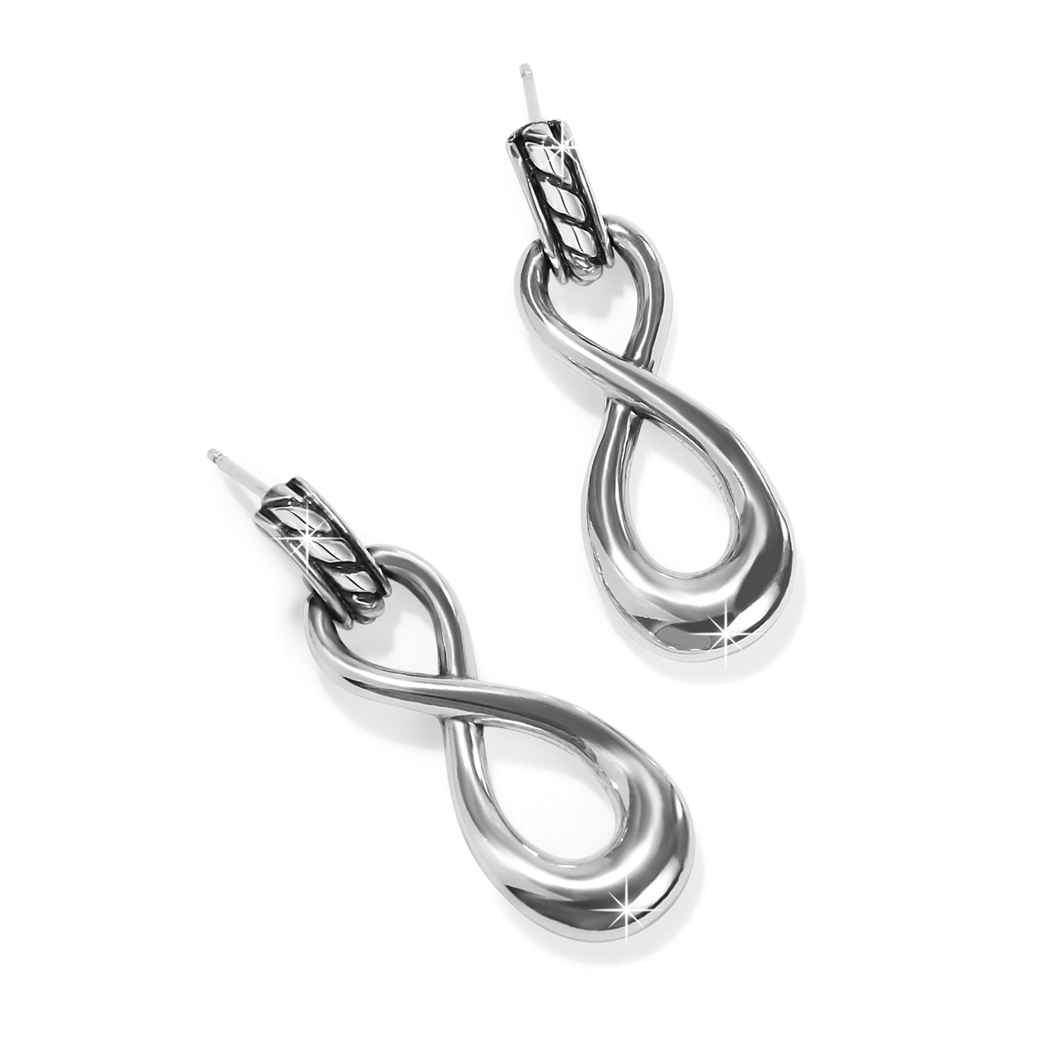 The infinity symbol hangs vertically from a sculpted rope link to create sculptural and graceful post drop earrings that add elegant simplicity to your look. An infinitely wearable addition to your earring collection!