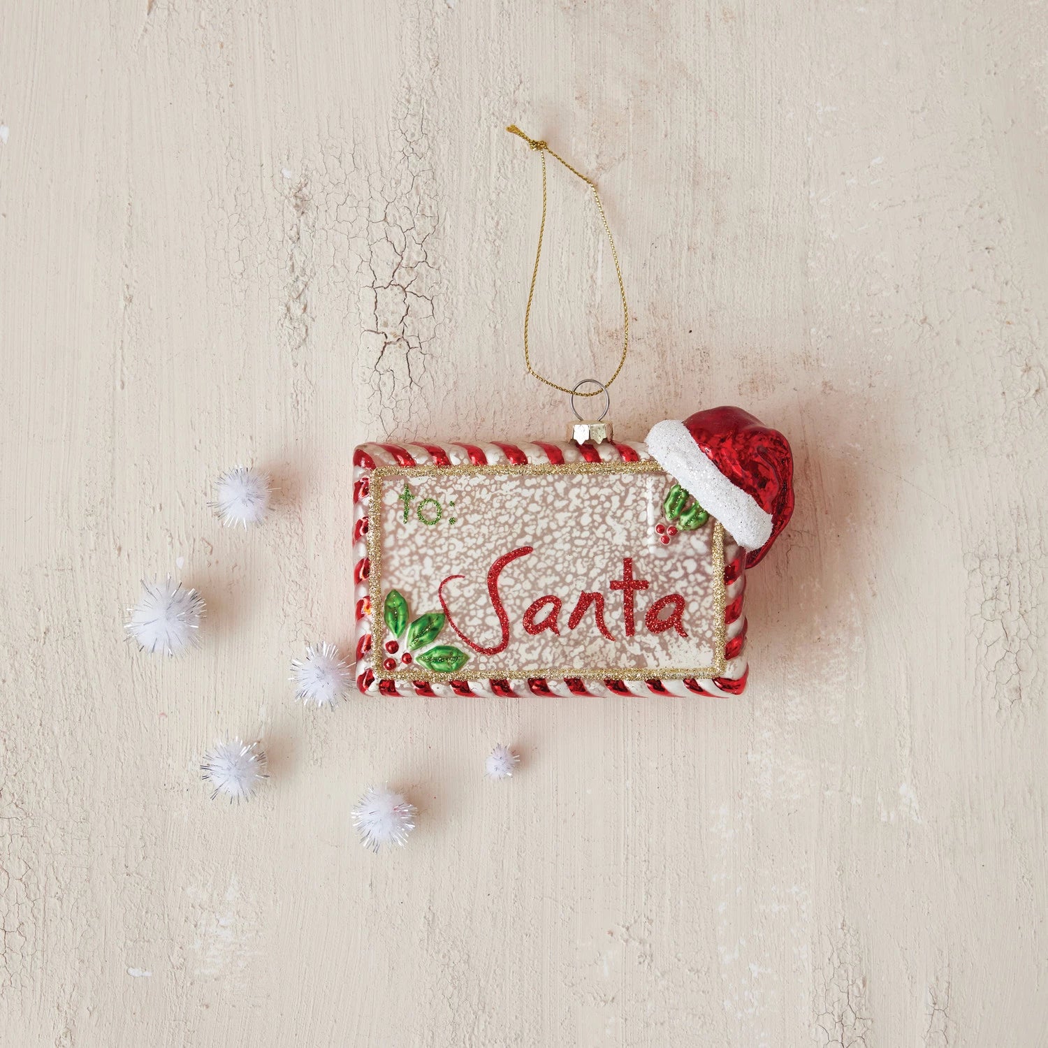 4-3/4"L x 1-1/2"W x 3-1/4"H Glass Letter to Santa Ornament w/ Glitter, Red & Green