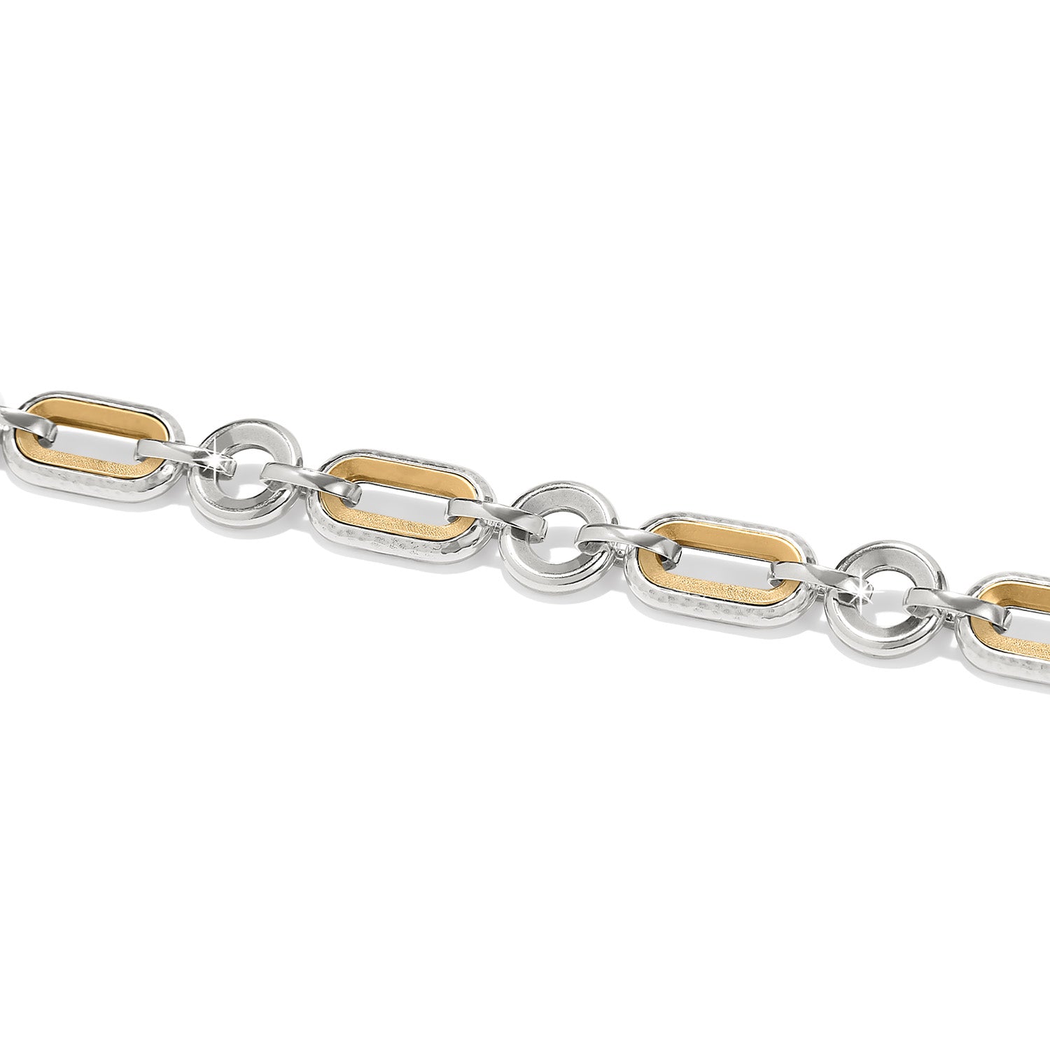 Casted and sculpted round and rectangular links represent eternal love and connection on this versatile two-tone bracelet that you can wear with all your silver and gold jewelry. The labor-intensive hand-painted and hand-hammered techniques give it an elevated look.