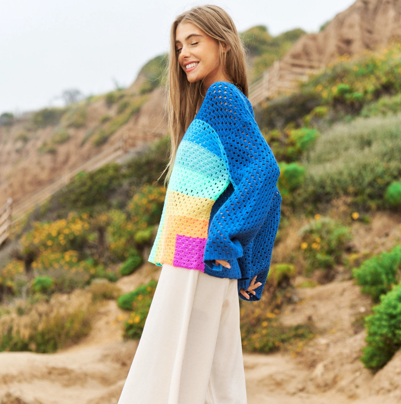 PLUS EXCLUSIVE Multi Color Open Knit Top