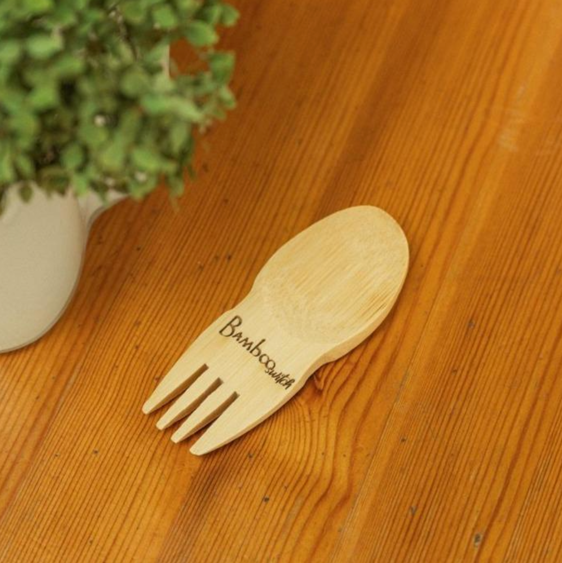 Introducing the Bamboo Spork - a sustainable dining essential combining the functionality of a spoon and fork. Crafted from eco-friendly bamboo, this compact and durable utensil is perfect for on-the-go meals and outdoor adventures.