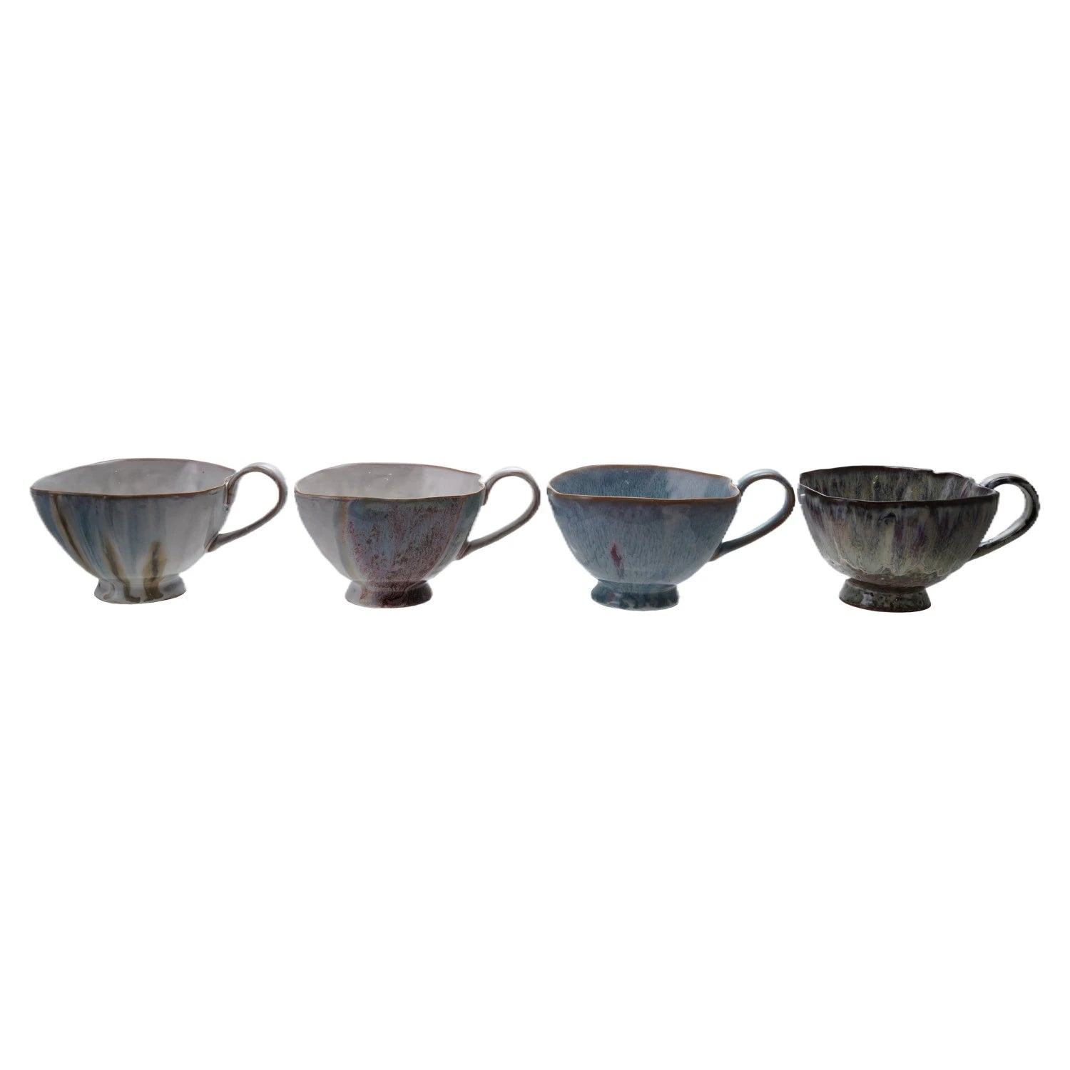 4-1/2" Round x 3-1/4"H 14 oz. Stoneware Footed Mug, Reactive Glaze, 4 Colors (Each One Will Vary)