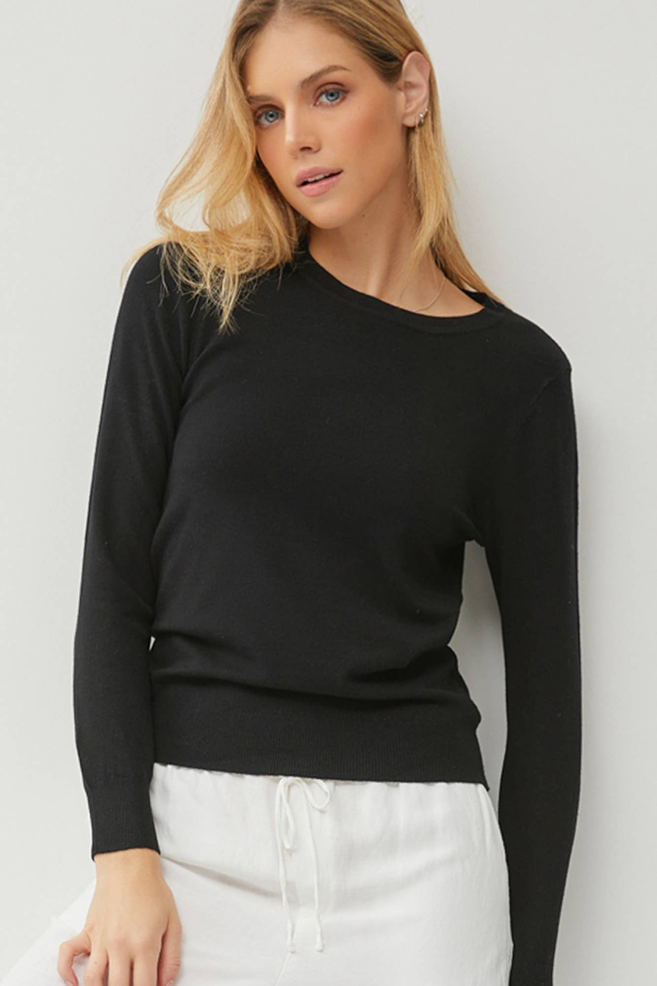 The Classic Sweater, a basic super soft sweater features a round neckline and long sleeves, ribbed ends