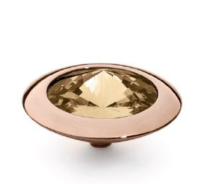 The 16mm Tondo topper is the largest Qudo stone. This top has a relatively flat profile and a wide band of shiny metal surrounding the beautiful swarovski stone. Like its baby sister, the Tondo 13mm, this topper is available in 2 styles: with just a simple band of metal around the stone or with a ribbon of tiny Swarovski crystals encasing the large center stone.