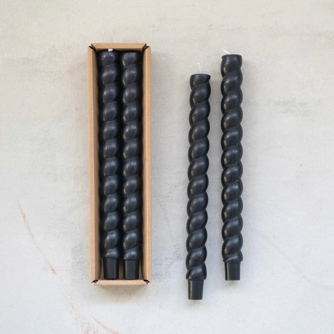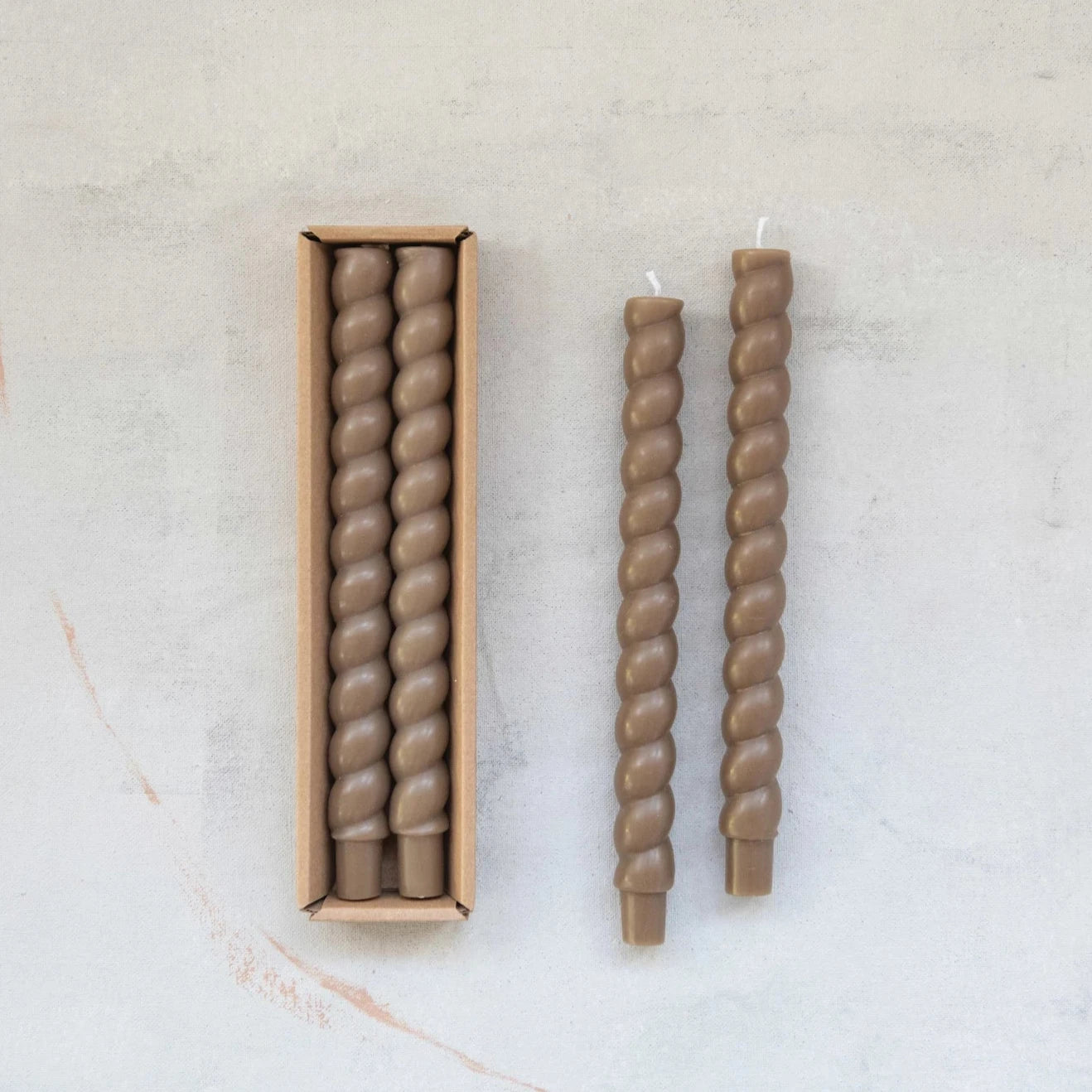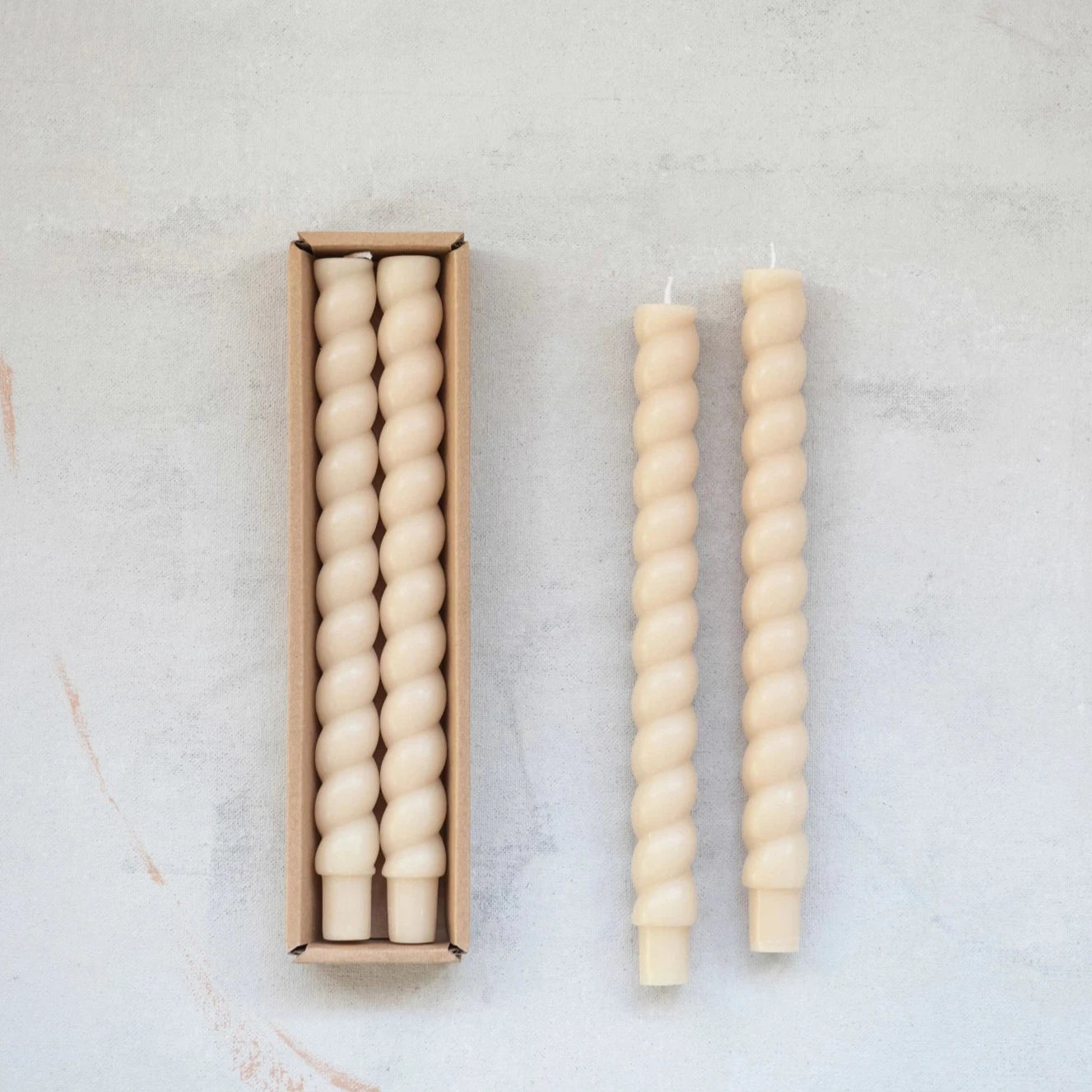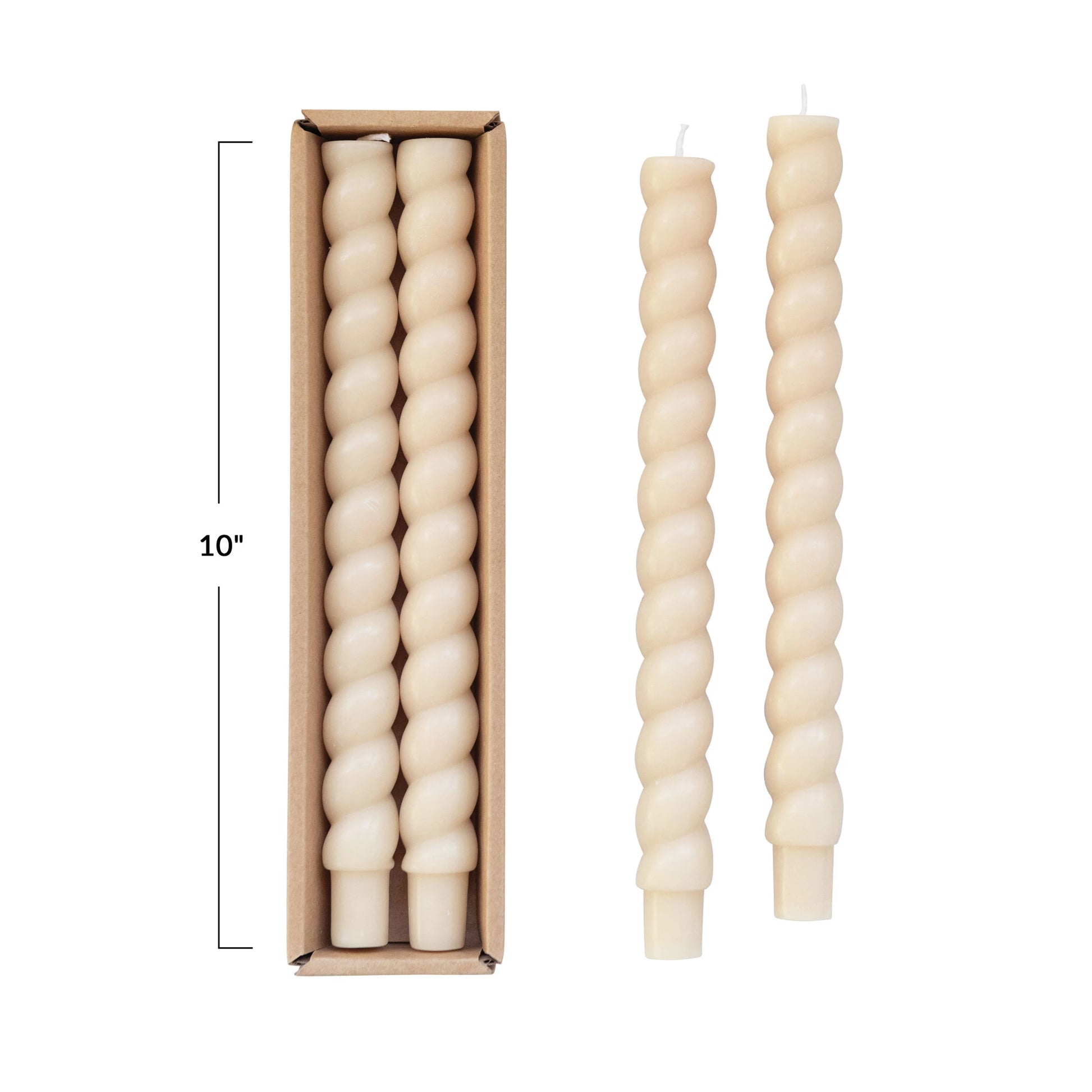 10"H Unscented Twisted Taper Candles in Box, Set of 2 (Approximate Burn Time 10 Hours)