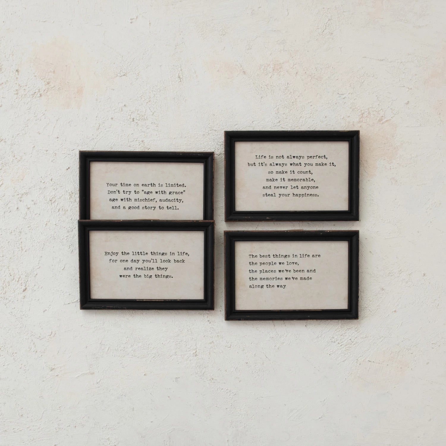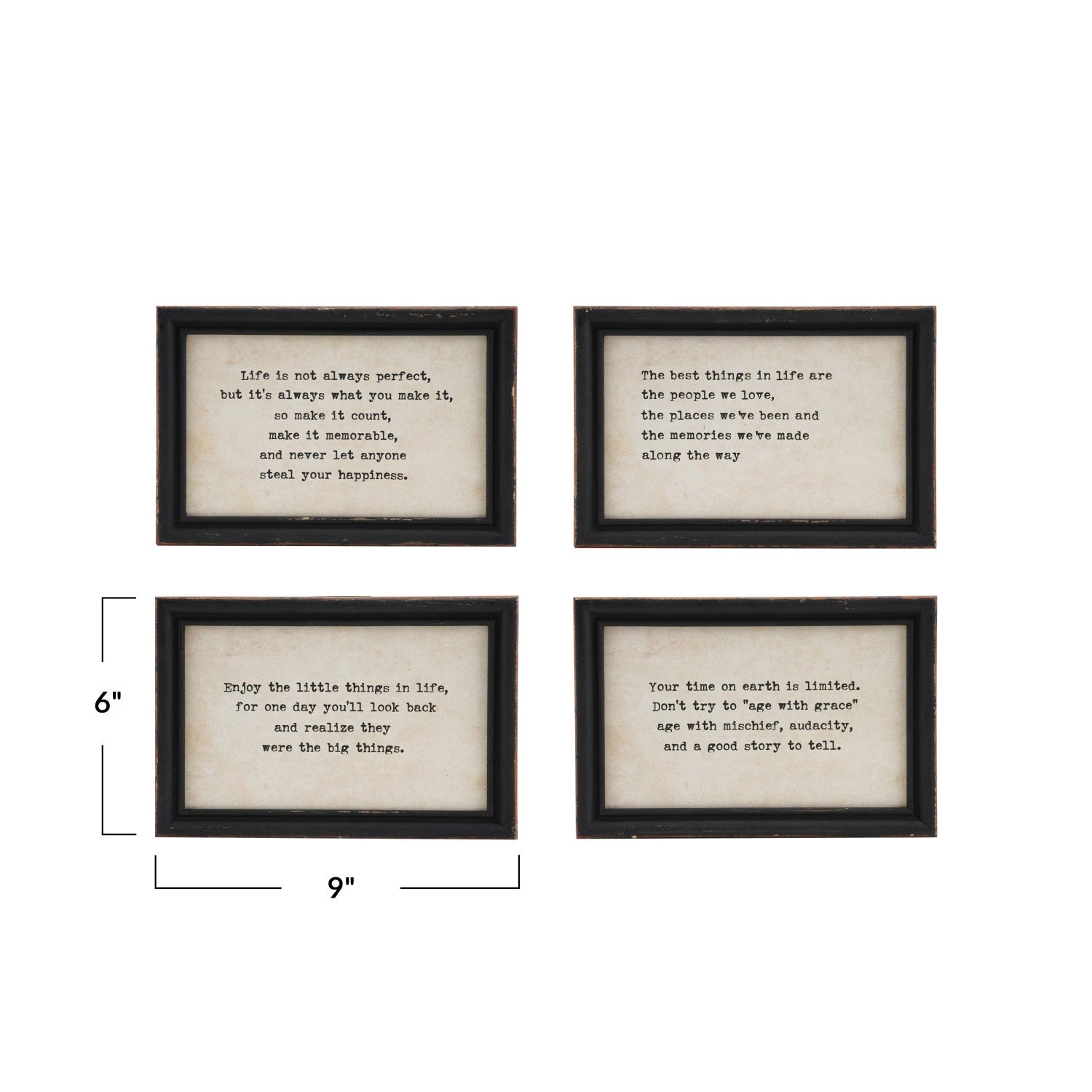 9"W x 6"H Wood Framed Wall Décor w/ Saying, Black & White, 4 Styles Available, Each Sold Separately